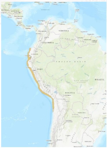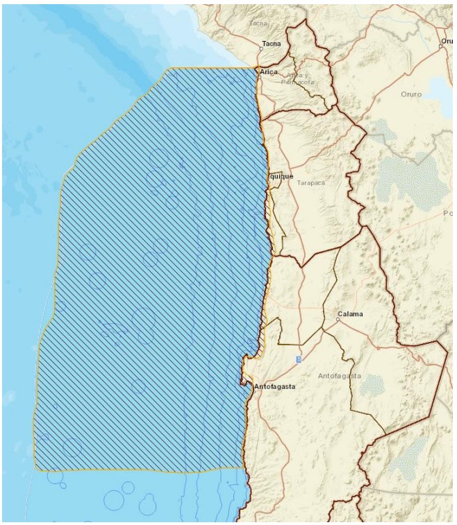 El alcance territorial de este Plan se definió como toda el área de distribución de la especie en Chile (Figura 4), entre el límite norte con Perú y el límite su r de la comuna de Antofagasta, incluyendo la costa que posee planicies litorales hasta un máximo de diez kilómetros tierra adentro y toda la porción de mar hasta las 200 millas náuticas. Por tanto, el alcance de este Plan considera la porción de tierra que albergan los sitios de nidificación y las áreas post-reproductivas, de descanso y acicalamiento conocidas, así como las áreas de alimentación y descanso en el mar que sean identificadas.