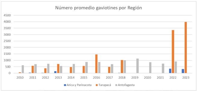 Gráfico 1. Número promedio de Gaviotines Chicos registrados en cada región según temporada.