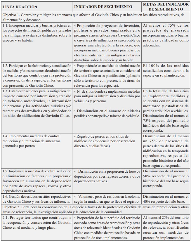 a. Objetivo General: recuperar y conservar al Gaviotín Chico a través de la protección de sus áreas de nidificación, descanso y crianza, así como la disminución y/o control de sus amenazas, con el fin de contribuir a mantener o aumentar su población.