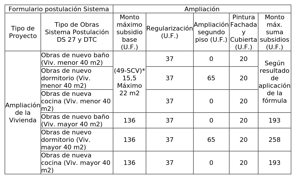 "En los proyectos de ampliación para la línea de xilófagos no aplica el factor multiplicador de ajuste de los montos de subsidio de la resolución exenta Nº 2.012, (V. y U.), de 2019, citada en el Visto j) de la presente resolución."
