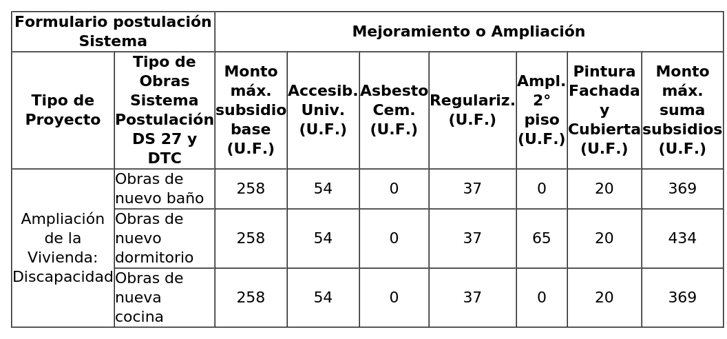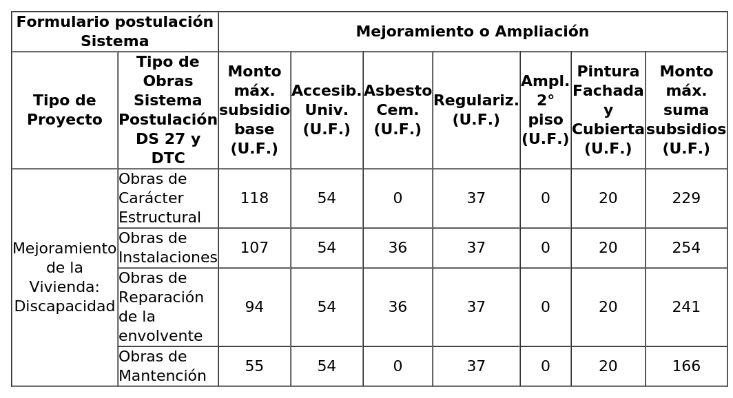 v. Mejoramiento o Ampliación de la Vivienda: Discapacidad.