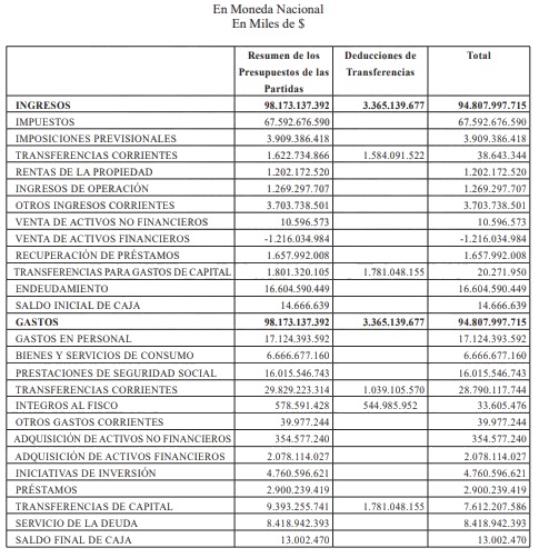 "Artículo 1.- Apruébase el Presupuesto de Ingresos y Gastos del Sector Público, para el año 2026, según el detalle que se indica: