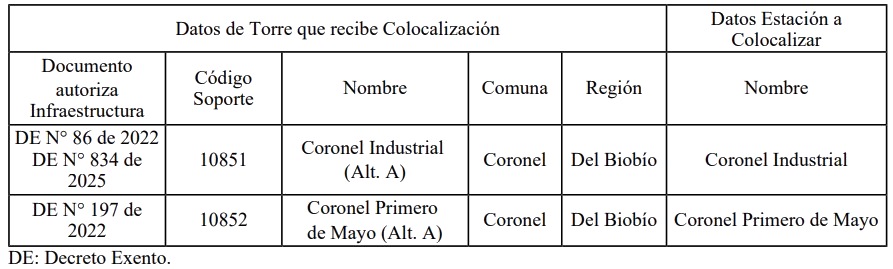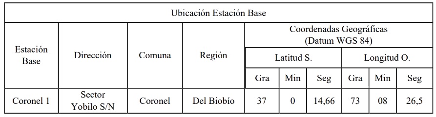 5. La Estación Base de la tabla 1.1 precedente, deja de estar afecta al pago de derechos por utilización del Espectro Radioeléctrico, a contar de la fecha de publicación en el Diario Oficial del presente decreto.