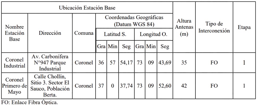 Las Estaciones Base se ubicarán en infraestructura existente y se conectarán a la red a través de medios propios o de terceros debidamente autorizados.