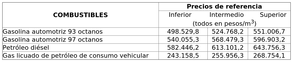 DETERMINA PRECIOS DE REFERENCIA PARA COMBUSTIBLES DERIVADOS DEL PETRÓLEO