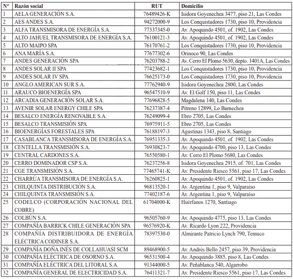I. INSTITUCIONES QUE PROVEEN SERVICIOS DE GENERACIÓN, TRANSMISIÓN O DISTRIBUCIÓN ELÉCTRICA Y EL COORDINADOR ELÉCTRICO NACIONAL