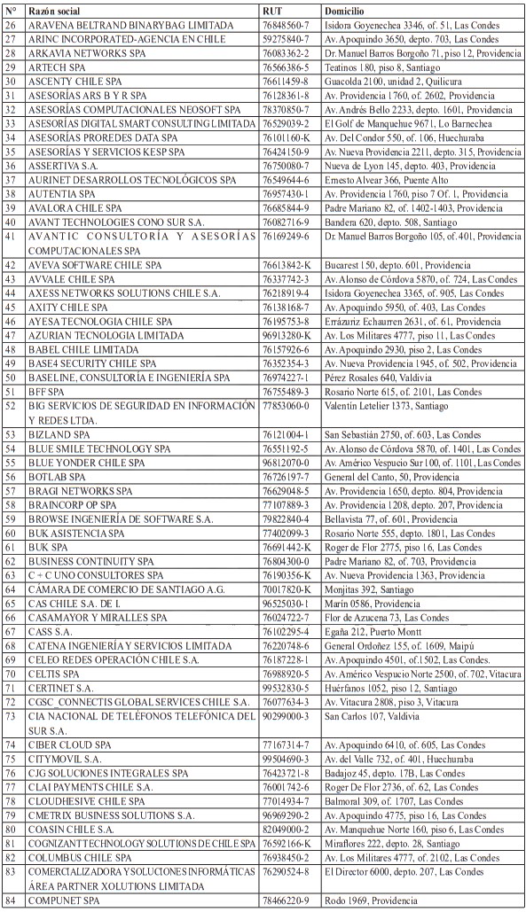 En relación con el resto de las instituciones, se procedió a una segunda etapa para determinar la concurrencia del primer requisito exigido por el artículo 5° de la ley, esto es, que la provisión del servicio dependa de redes y sistemas informáticos.