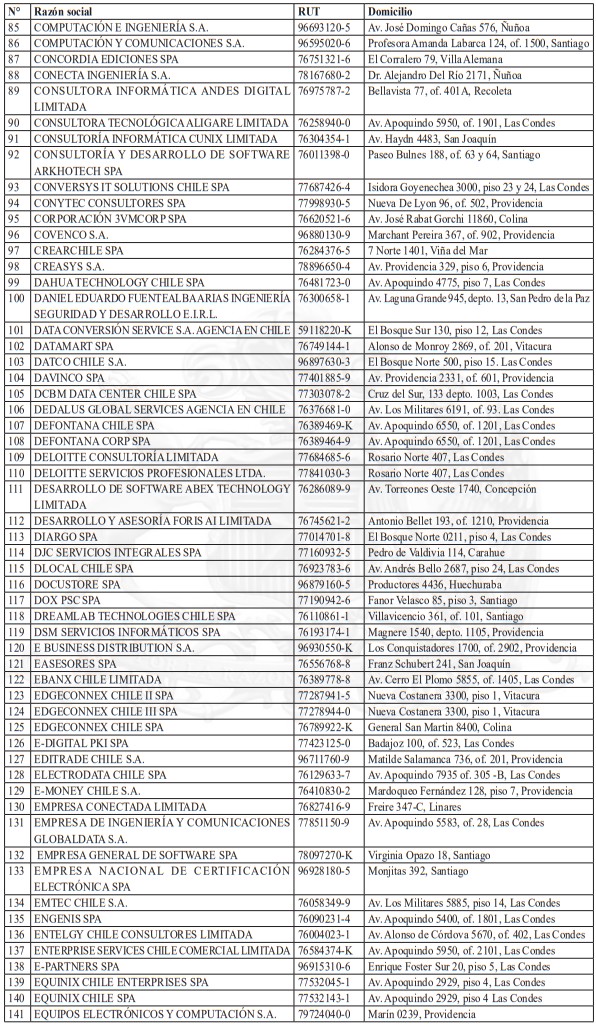Con fecha 24 de junio de 2025, la Agencia remitió al Servicio de Impuestos Internos el oficio secreto N°26, complementando el oficio anterior, para agregar los siguientes códigos de actividad: 65100, 474100, 582000, 620100, 620200, 620900, 631100 y 631200.