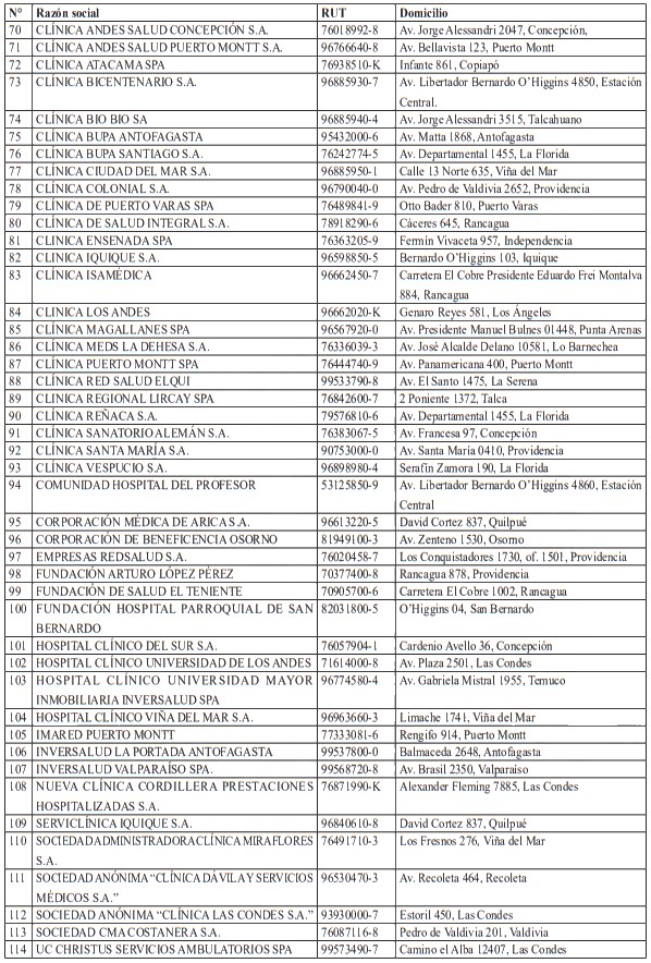 En relación con las Instituciones de Salud Previsional (Isapres), de conformidad al artículo 171° y siguientes del decreto con fuerza de ley N°1, de 2005, del Ministerio de Salud corresponde a dichas instituciones financiar las prestaciones y beneficios de salud, pero les está vedada su participación en la ejecución de dichas prestaciones. Debido a ello, estas instituciones serán calificadas en la segunda fase del proceso de calificación, el cual se encuentra actualmente en ejecución, en virtud de su rol predominantemente previsional.
