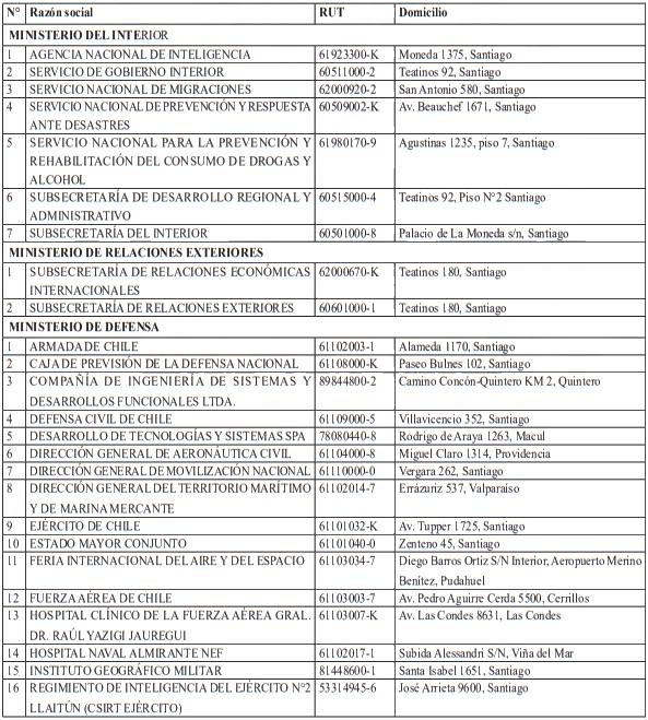 Para efectos de calificar a los organismos de la Administración del Estado, la Agencia requirió a través del Oficio Secreto N°104, de 2025, un informe fundado del Ministerio de Hacienda, acerca de las instituciones públicas preliminarmente calificadas como operadores de importancia vital. Dicha información fue remitida a la Agencia con fecha 12 de diciembre de 2025, a través del Oficio Secreto N°E8405/2025.