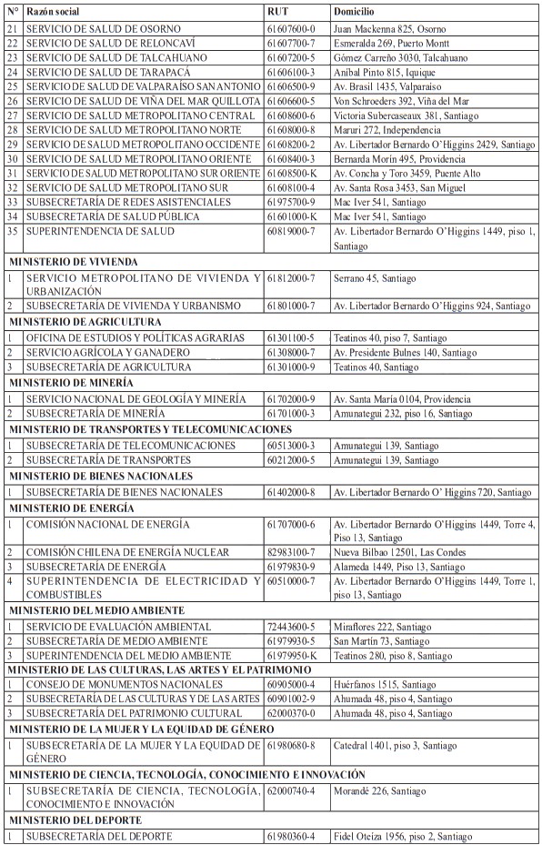 VII. Organismos de la Administración del Estado