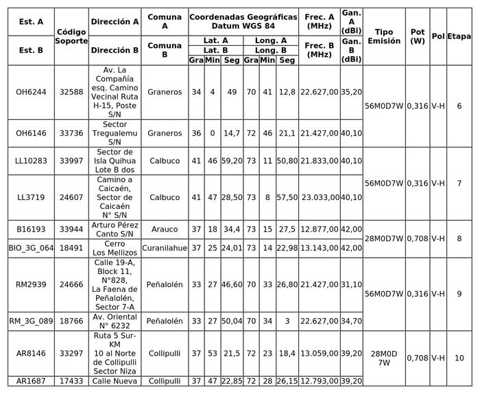 Los radioenlaces se conectarán a la red existente, a través de medios propios o de terceros debidamente autorizados.