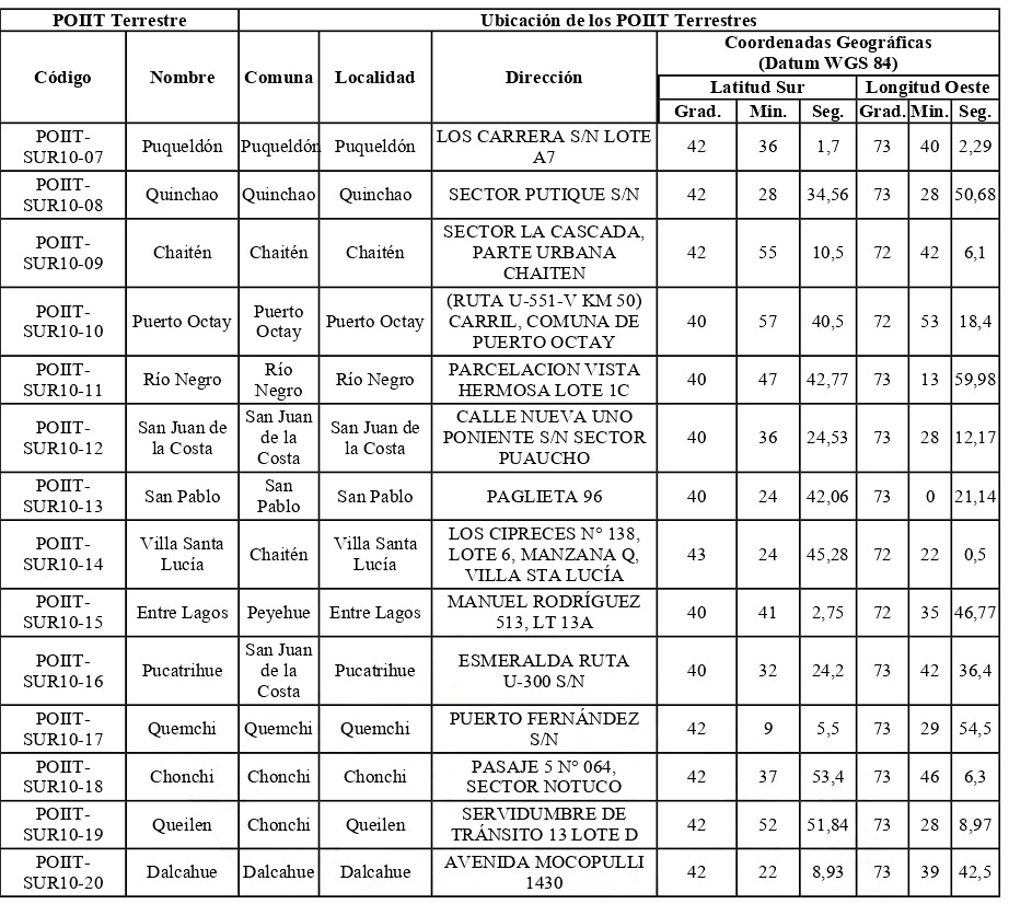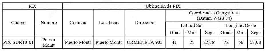 1.1. Modificar la dirección y coordenadas geográficas del PIX de la tabla del numeral 2, autorizado mediante decreto supremo del literal m) de los Vistos, según se indica a continuación: