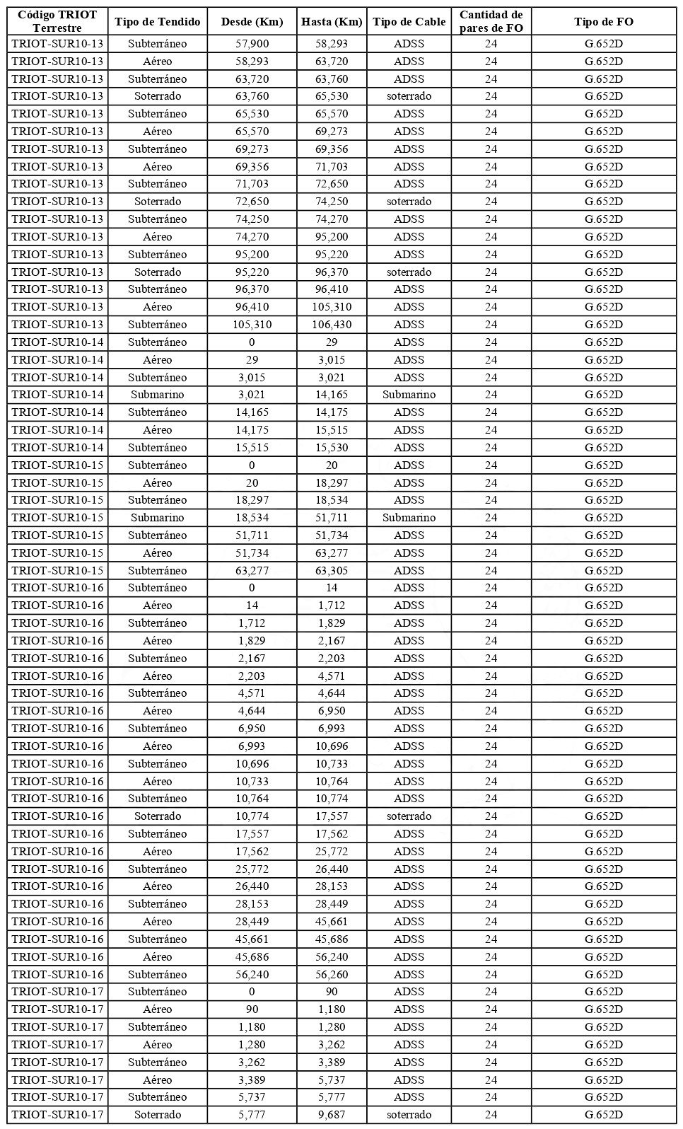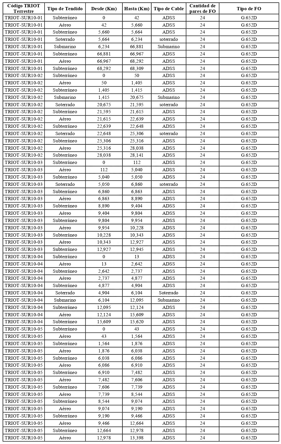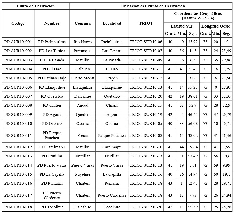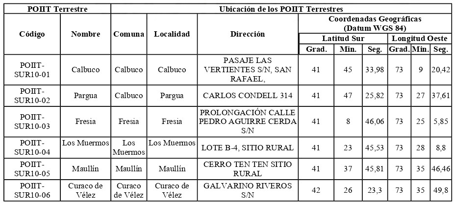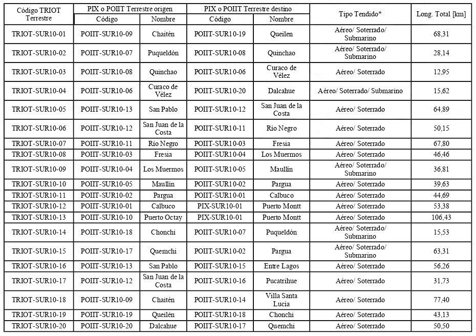 . TRIOT-SUR10: Tramo de Infraestructura Óptica para Telecomunicaciones Los Lagos.