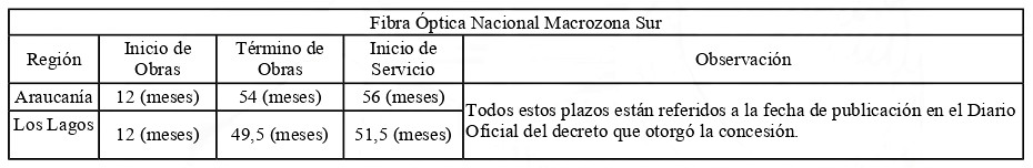 2. Autorízase a la concesionaria para, según ingreso Subtel N° 106.570/2025, modificar los plazos máximos de término de obras y de inicio de servicio establecidos en la concesión otorgada por decreto supremo N° 158 de 2021, del Ministerio de Transportes y Telecomunicaciones, de conformidad al pronunciamiento emitido por la Subsecretaría de Telecomunicaciones y que consta en el oficio Ord. del literal n) de los Vistos, según se indica a continuación: