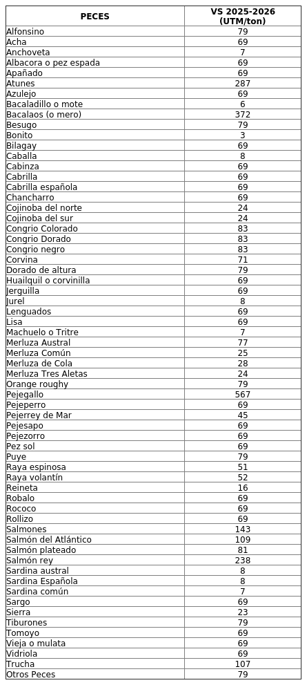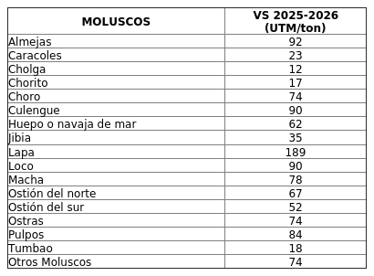 FIJA VALOR DE SANCIÓN DE ESPECIES HIDROBIOLÓGICAS QUE INDICA PERIODO 2025-2026