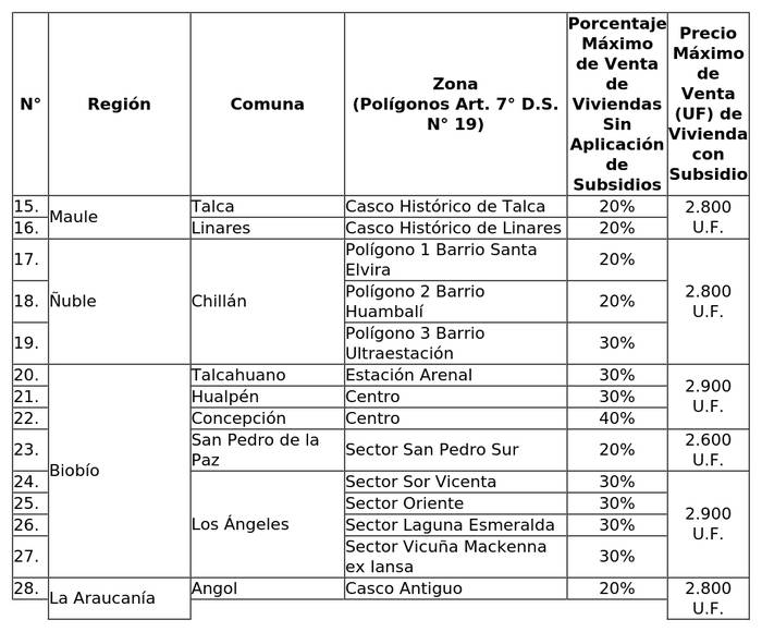 1. Modifícase la resolución exenta Nº 1.414 (V. y U.), de fecha 1 de septiembre de 2021, y sus modificaciones, en el sentido de reemplazar el Cuadro inserto en su resuelvo 1º, por el que se detalla a continuación, que incorpora la ampliación de la zona "centro" en la comuna de Concepción y, la nueva zona "Sector San Pedro Sur", en la comuna de San Pedro de la Paz, ambas en la Región del Biobío: