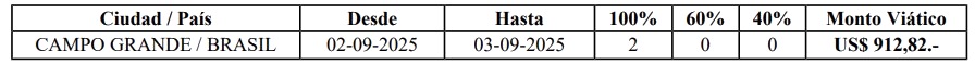 Que, por el día 4 de septiembre de 2025, no se pagará viático por encontrarse en vuelo de regreso a Santiago de Chile.