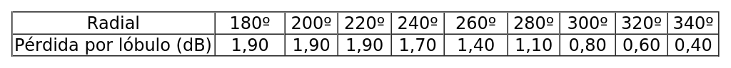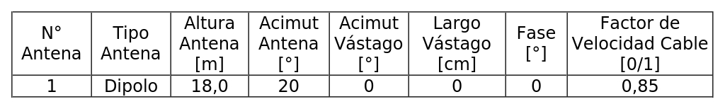 - Arreglo de antenas, de acuerdo al siguiente cuadro: