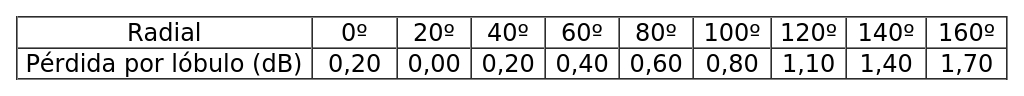 - Diagrama de radiación horizontal, de acuerdo a la siguiente tabla: