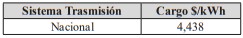 Tabla N° 3: Cargo asociado al segmento de transmisión nacional para clientes regulados y libres