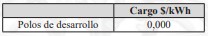 En virtud de lo indicado en el artículo 116° de la ley y en el artículo 151° del Reglamento, el cargo único correspondiente a los sistemas de transmisión para polos de desarrollo, de la proporción no utilizada por centrales generadoras, se determinará en base a la diferencia entre el 50% de la proporción del valor anual de los tramos correspondientes, asignada a dichos consumidores, y la proporción de los ingresos tarifarios reales disponibles del semestre anterior, dividida por la suma de la energía proyectada total a facturar a los suministros finales del sistema interconectado para el mismo semestre de vigencia de dicho cargo.