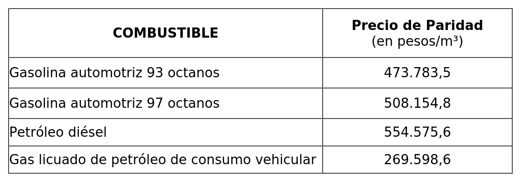 FIJA PRECIOS DE PARIDAD PARA COMBUSTIBLES DERIVADOS DEL PETRÓLEO