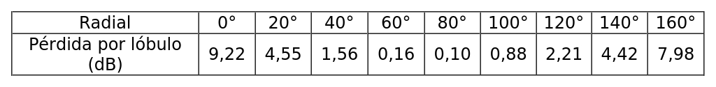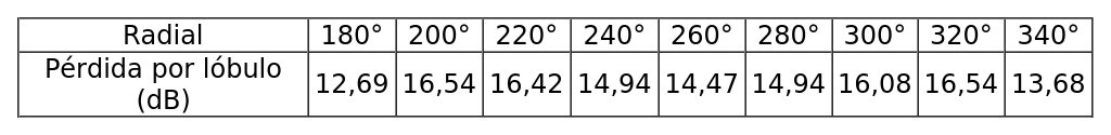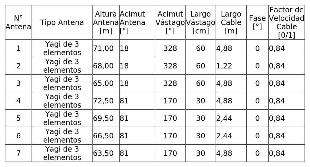 - Arreglo de antenas, de acuerdo al siguiente cuadro: