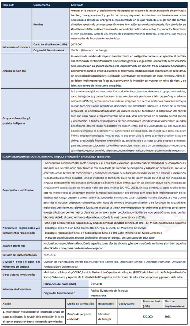 En un contexto de transformación productiva hacia una nueva identidad que permita aprovechar las oportunidades de un desarrollo económico sustentable ligado a la energía, resulta fundamental implementar medidas orientadas a dotar al sector energético y sus actores claves de las competencias laborales y capacidades técnicas necesarias para enfrentar los retos de una economía baja en carbono y adaptada a los efectos del cambio climático.