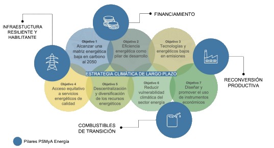 El Plan Sectorial de Mitigación y Adaptación al Cambio Climático de Energía contempla un horizonte temporal de corto plazo con miras a alcanzar sus compromisos a 2030, un año que es vital debido a que marca las metas intermedias en el camino hacia los compromisos a 2050, alineados con el Acuerdo de París mediante la Contribución Determinada a Nivel Nacional (NDC) de Chile y el respectivo presupuesto sectorial de carbono para la presente década. Este plan cuenta con cuatro pilares que lo sustentan en su visión técnica y estratégica: 1) Reconversión productiva; 2) Infraestructura resiliente y habilitante; 3) Combustibles de transición; y, 4) Financiamiento para la descarbonización.