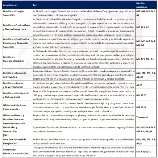 Tabla 8. Divisiones del Ministerio de Energía y sus roles en la implementación de las medidas del Plan.