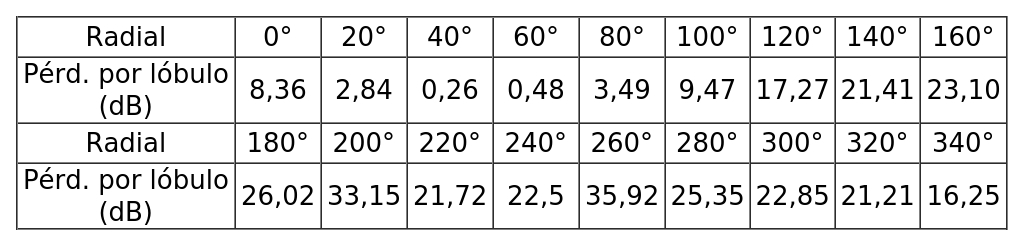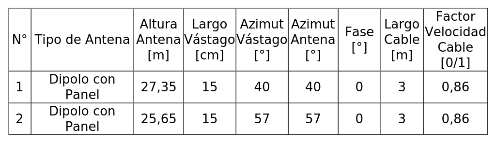 - Arreglo de antenas de acuerdo a la siguiente tabla: