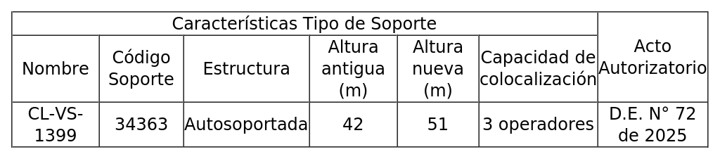 1. Autorízase a la concesionaria para modificar la altura de una (1) torre de telecomunicaciones, destinada a soportar sistemas radiantes, según se indica a continuación:
