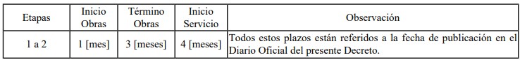 2. Los plazos, son los que se indican a continuación: