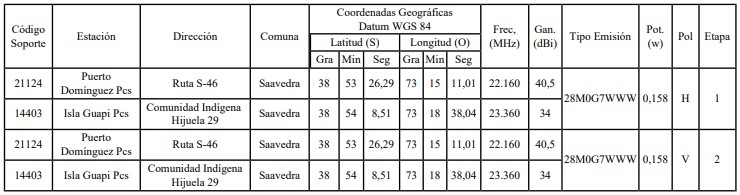 1. Autorízase a la concesionaria para instalar, operar y explotar dos (2) radioenlaces punto a punto, en la Región de La Araucanía, según se indica a continuación.