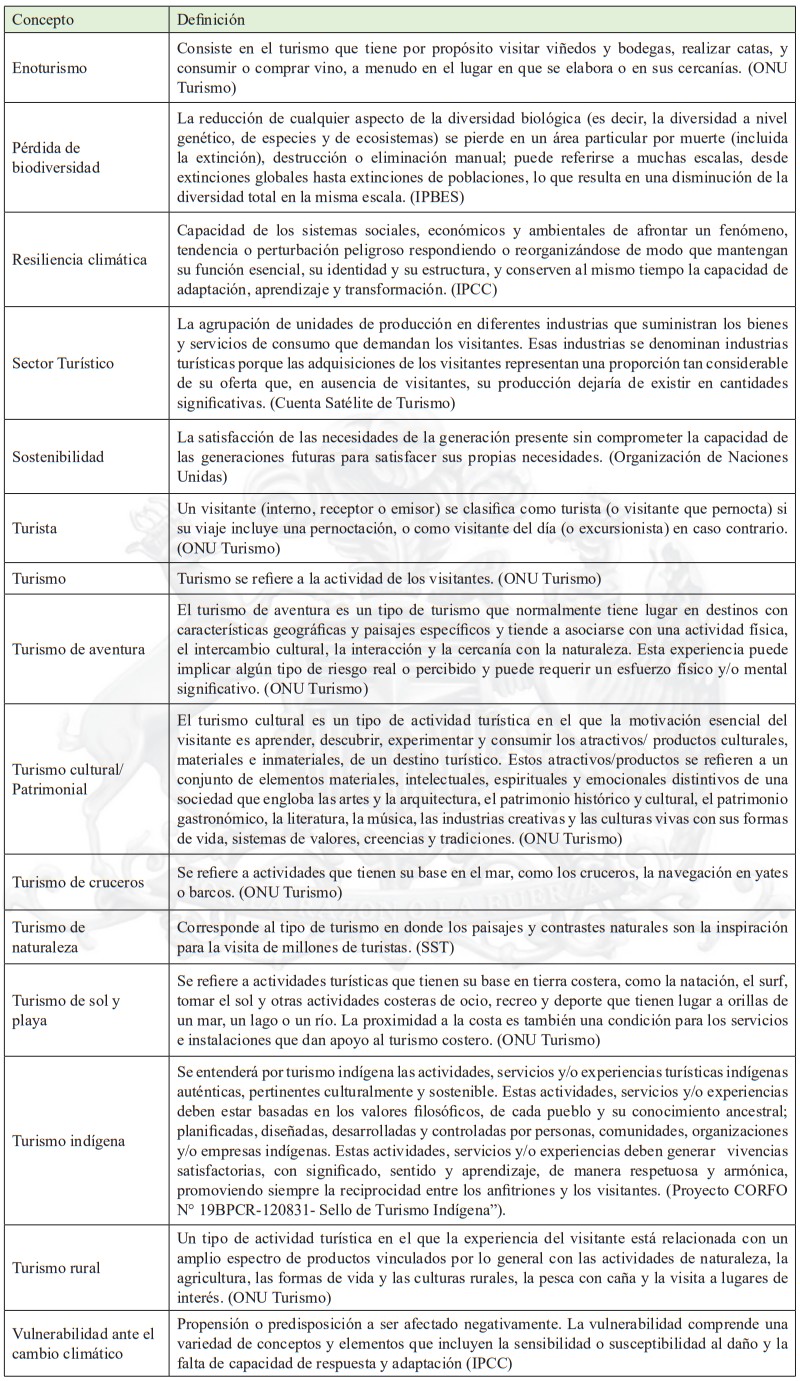 . Subsecretaría de Turismo y SERNATUR. (2018). Informe de Intensidad Turística y Definición de Destinos Turísticos. Chile.