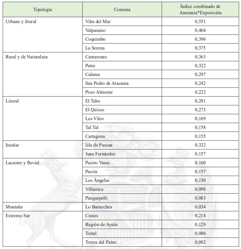 las comunas más amenazadas y expuestas