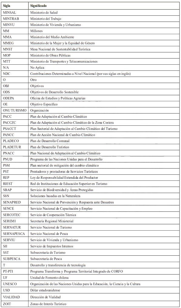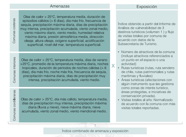 . SERNATUR y Subsecretaría de Turismo. (2023). Medida 12 Plan de Adaptación al Cambio Climático del Sector Turismo (PACCST): Identificación de destinos turísticos más vulnerables al cambio climático en cada región. Chile.