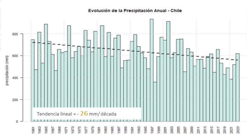 . DMC (2023). Dirección Meteorológica de Chile, "Reporte Anual de la Evolución del Clima en Chile (2023)", junio (2024), https://climatologia.meteochile.gob.cl/publicaciones/reporteEvolucionClima/reporteEvolucionClima2023.pdf