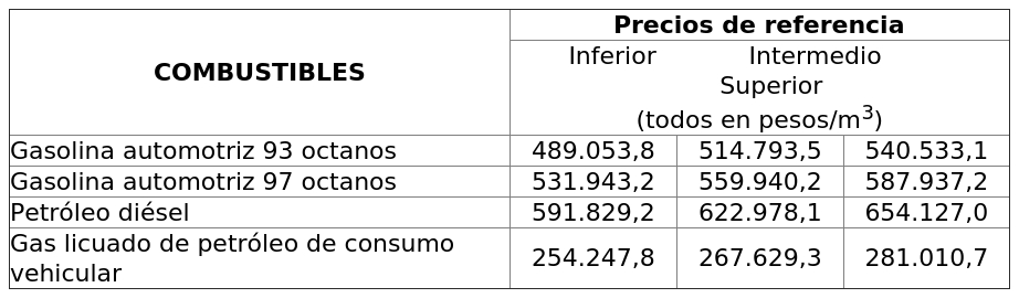 DETERMINA PRECIOS DE REFERENCIA PARA COMBUSTIBLES DERIVADOS DEL PETRÓLEO