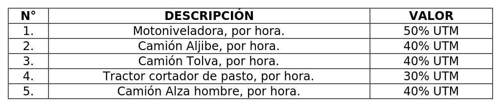 Derechos girados por la Dirección de Obras relativos al arriendo de vehículos y maquinaria municipal, según la siguiente tabla: