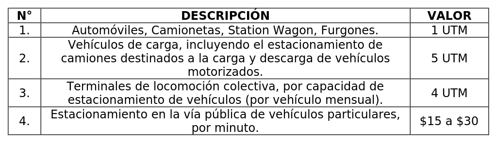 A) El permiso de estacionamiento reservado, en Bienes Nacionales de Uso Público ("BNUP"), en los casos contemplados en la Ley N° 18.290, en Instrumento de Planificación Territorial, en la Ordenanza Local para la Regulación de Materias de Tránsito, y en las demás normas legales que lo permitan, se otorgará previo informe favorable de la Dirección de Tránsito y Transporte Público y estará gravado con los siguientes derechos, por vehículo, semestralmente: