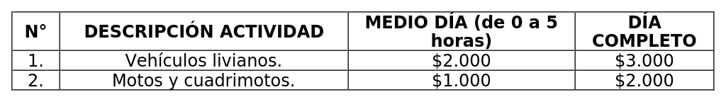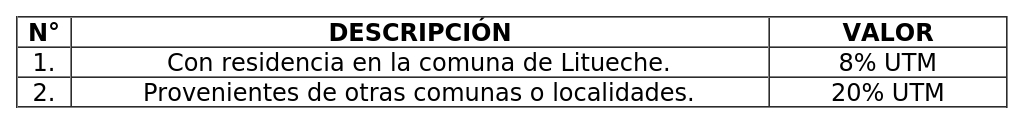 B) Derechos por estacionamiento a particulares en sectores turísticos a excepción de quienes residan en la comuna de Litueche, serán eximidos de este derecho. Para los demás, el valor será: