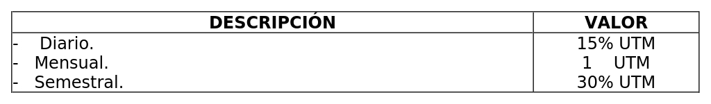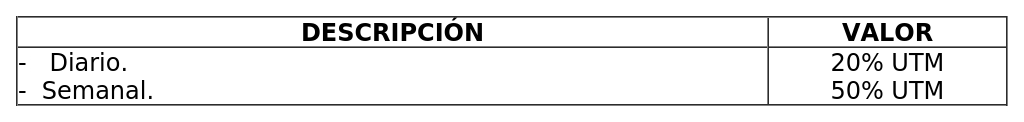 B) Derechos diarios, según el siguiente detalle: