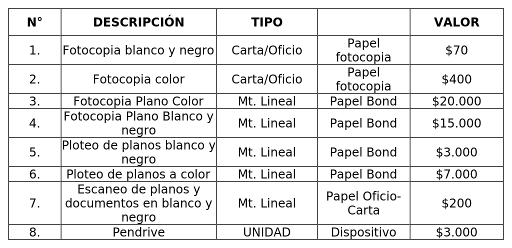 Los estudiantes que acrediten dicha calidad pagarán sólo el costo de la fotocopia o copia de planos y/o documentos.