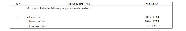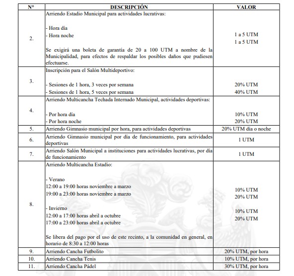 Se establece que las actividades que se realicen en recintos deportivos municipales, deberán cancelar los valores que en caso señale la ordenanza respectiva.