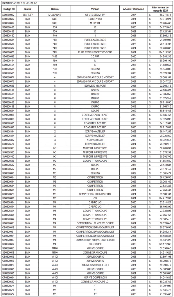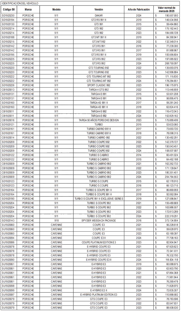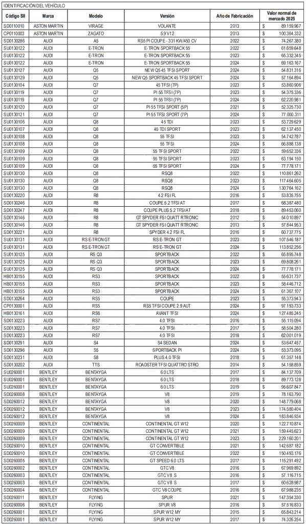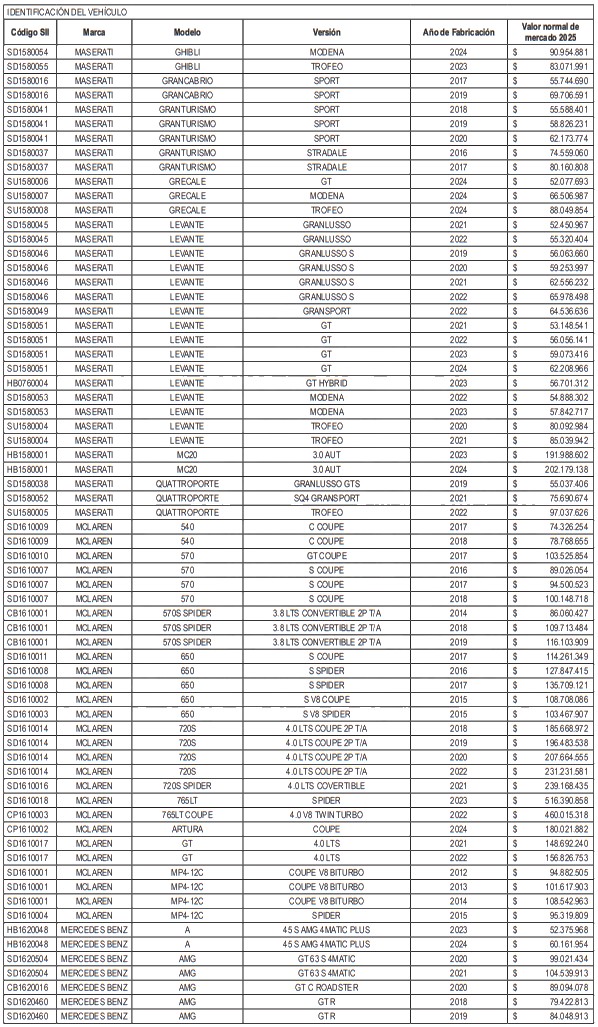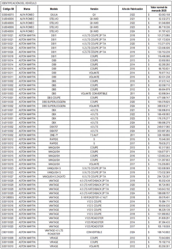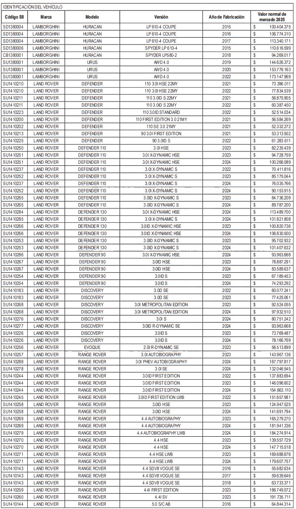 NÓMINA DE AUTOMÓVILES, STATION WAGONS Y VEHÍCULOS SIMILARES