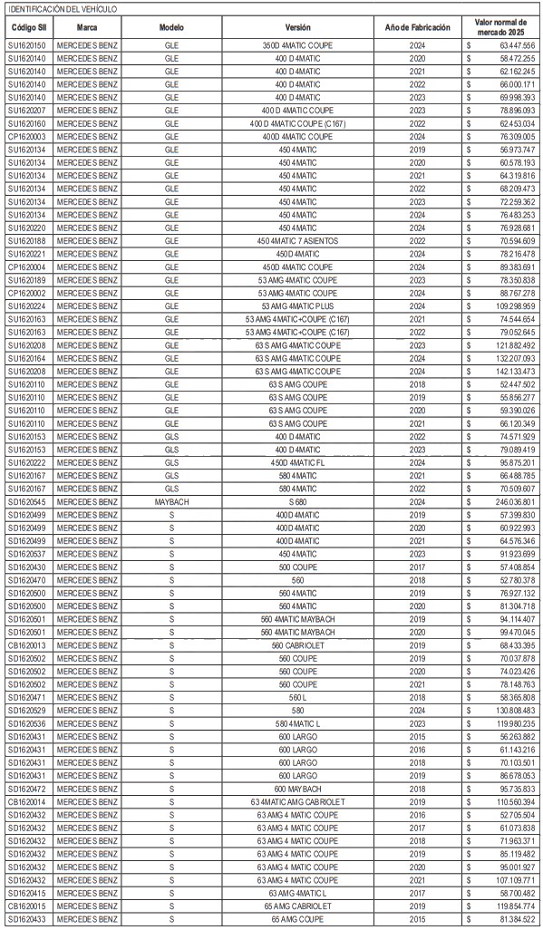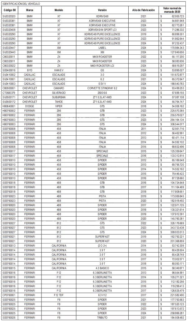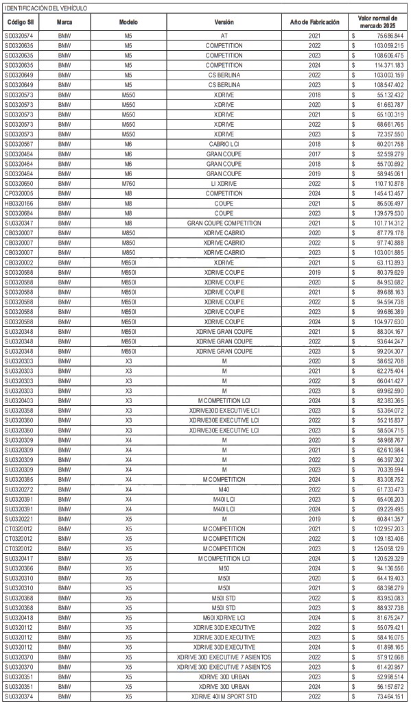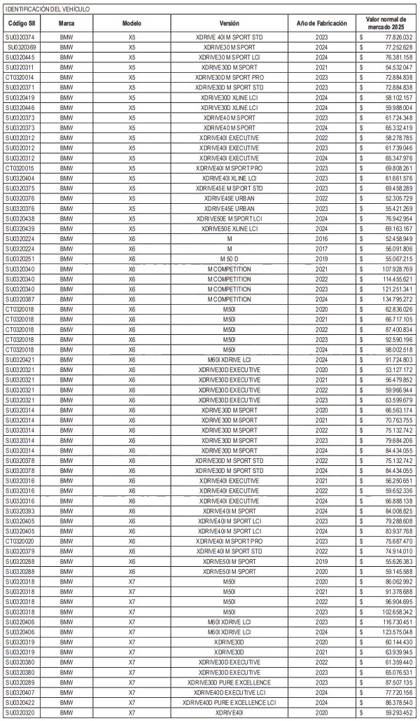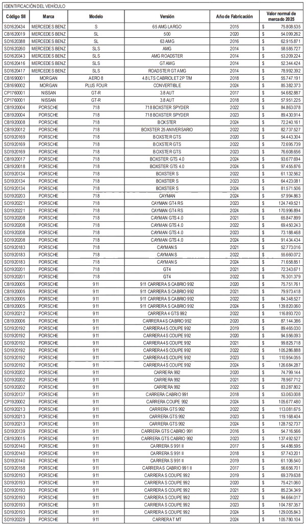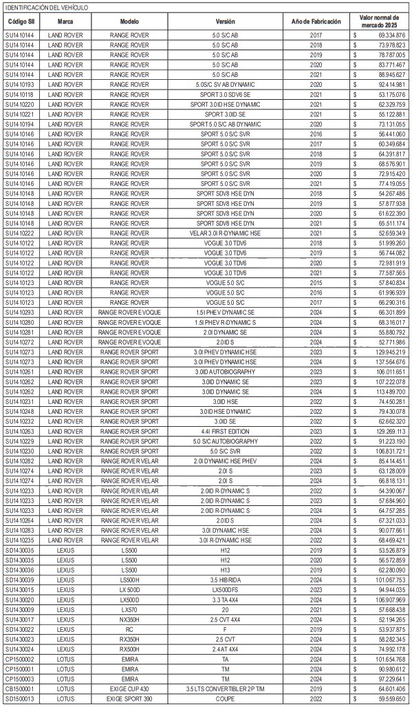 NÓMINA DE AUTOMÓVILES, STATION WAGONS Y VEHÍCULOS SIMILARES