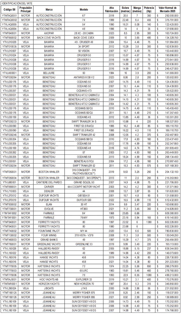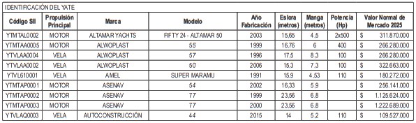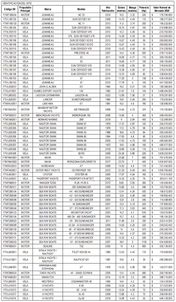 NÓMINA DE YATES