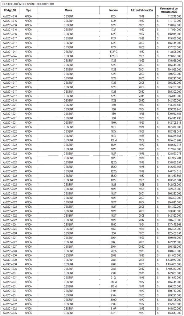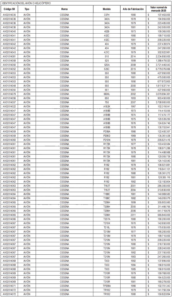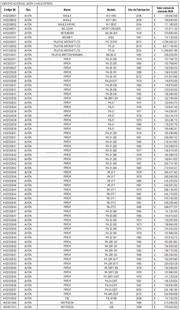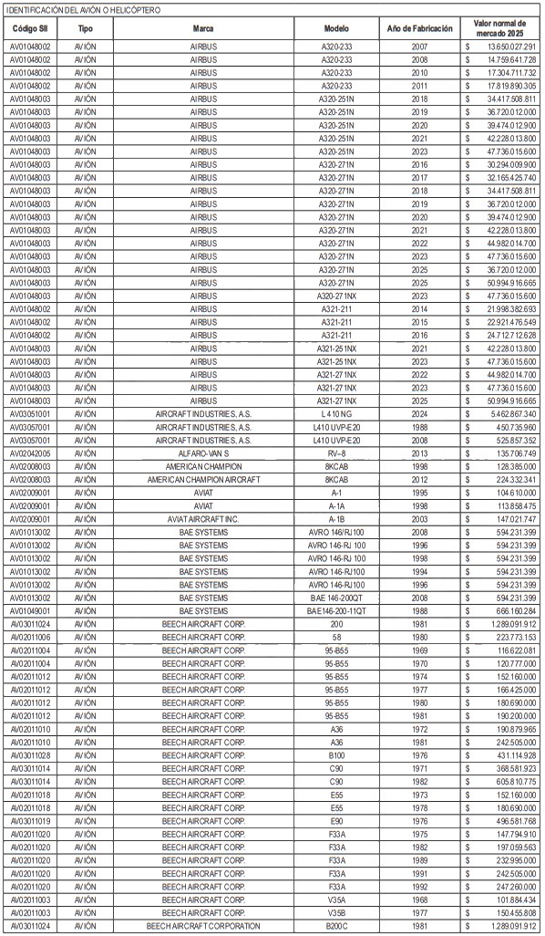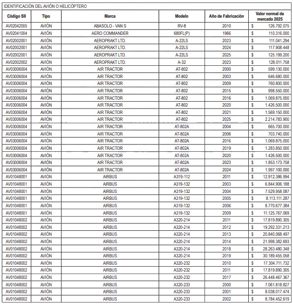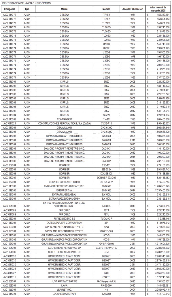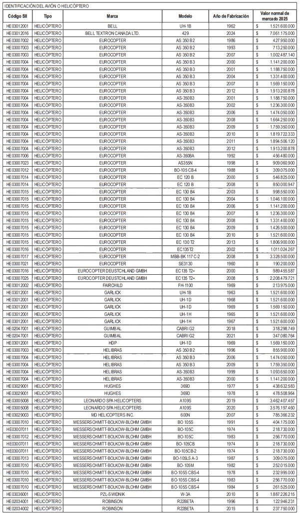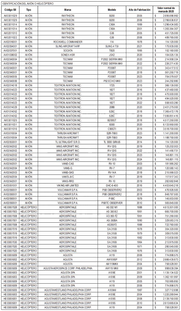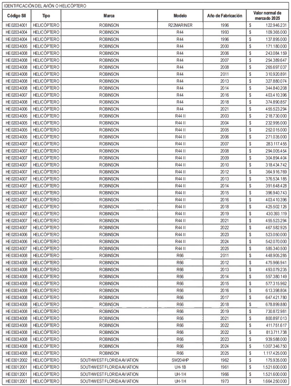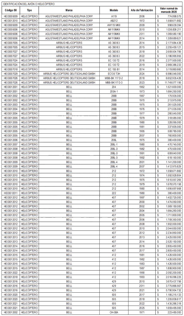 NÓMINA DE HELICÓPTEROS Y AVIONES